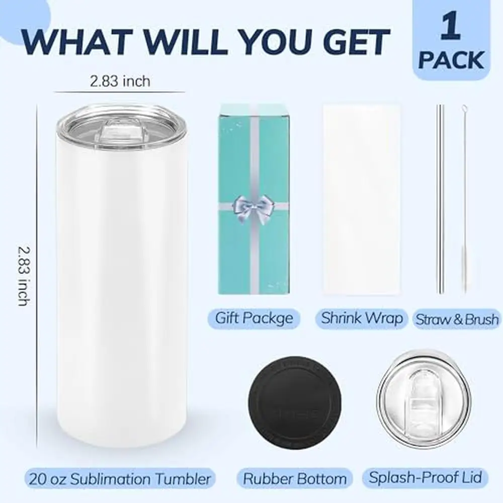 What Will You Get: 12 pk of 20 oz white sublimation blank tumblers with gift box, straw and brush, splash-proof lid, rubber bottom and shrink wrap film. You can DIY Unique tumbler for your family members and your friends you really care as a gift
