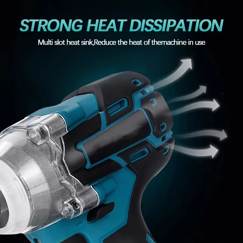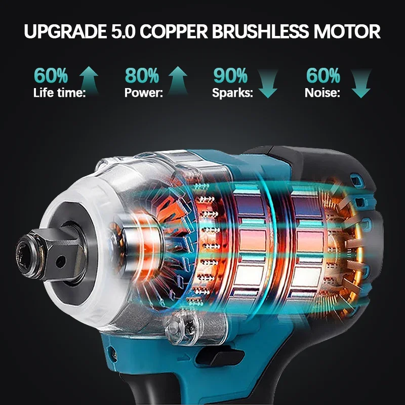 【LED Work Light, Soft Grip】This Electric impact wrench features a super-bright built-in LED work light. It will turn on automatically after you press the switch trigger, this improves visibility, never worries when even working in dark areas. Over-molded rubber grip design makes you feel no obvious numbness in the hand when operating. Ergonomic grip curve reduces muscle soreness even after a long time of work.