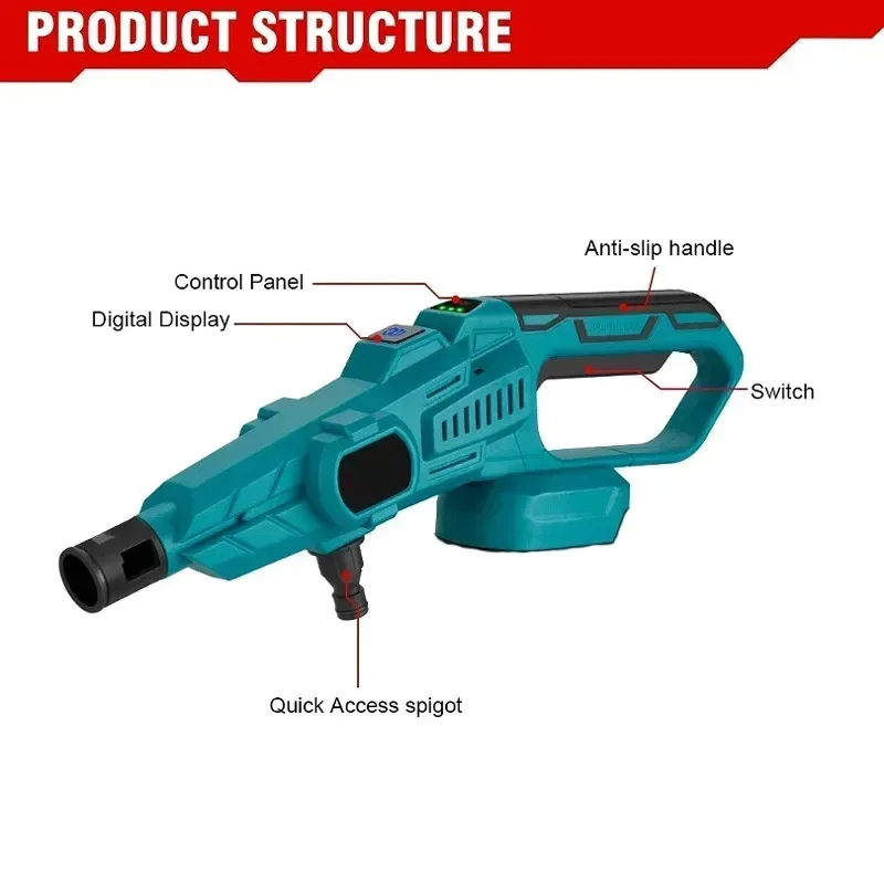 1. Wireless car washing machine, no need to plug in when washing the car, convenient and fast.