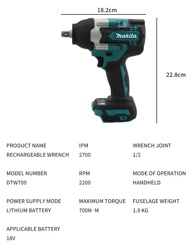 delivers higher torque▲BL motor delivers 700-1000 N·m (520 ft.lbs.) of max torque▲BL motor is electronically controlled to optimize battery energy use for longer run time per charge▲BL motor eliminates carbon brushes, enabling the BL motor to run cooler and more efficiently for longer life▲BL motor efficiently uses energy to match torque and RPM to the changing demands of the application▲Variable provides fastening control for a wide range of applications▲LED lights with preglow and afterglow functions for better illumination▲Convenient 1/2″ (12.7 mm) square drive for quick socket changes▲Ergonomically designed handle with soft grip provides increased comfort on the job▲Reversing switch is conveniently located