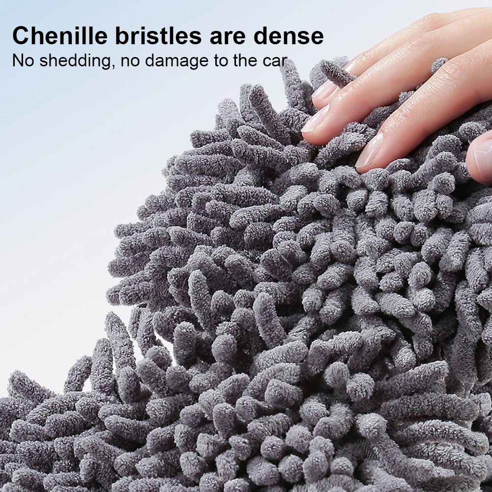 2. Telescopic Handle: Equipped with a corrosion-resistant telescopic aluminum pole, the foam wash chenille brush extends to reach every corner of your car, making it easy to clean the roof, windshield, and other hard-to-reach areas.