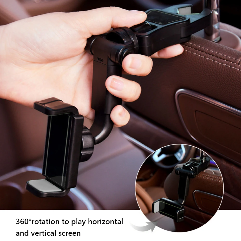 Telescopic Car Rearview Mirror Phone Mount Holder Concealed Crab Clip Bracket Rotary Auto Seat Smartphone Support Accessory