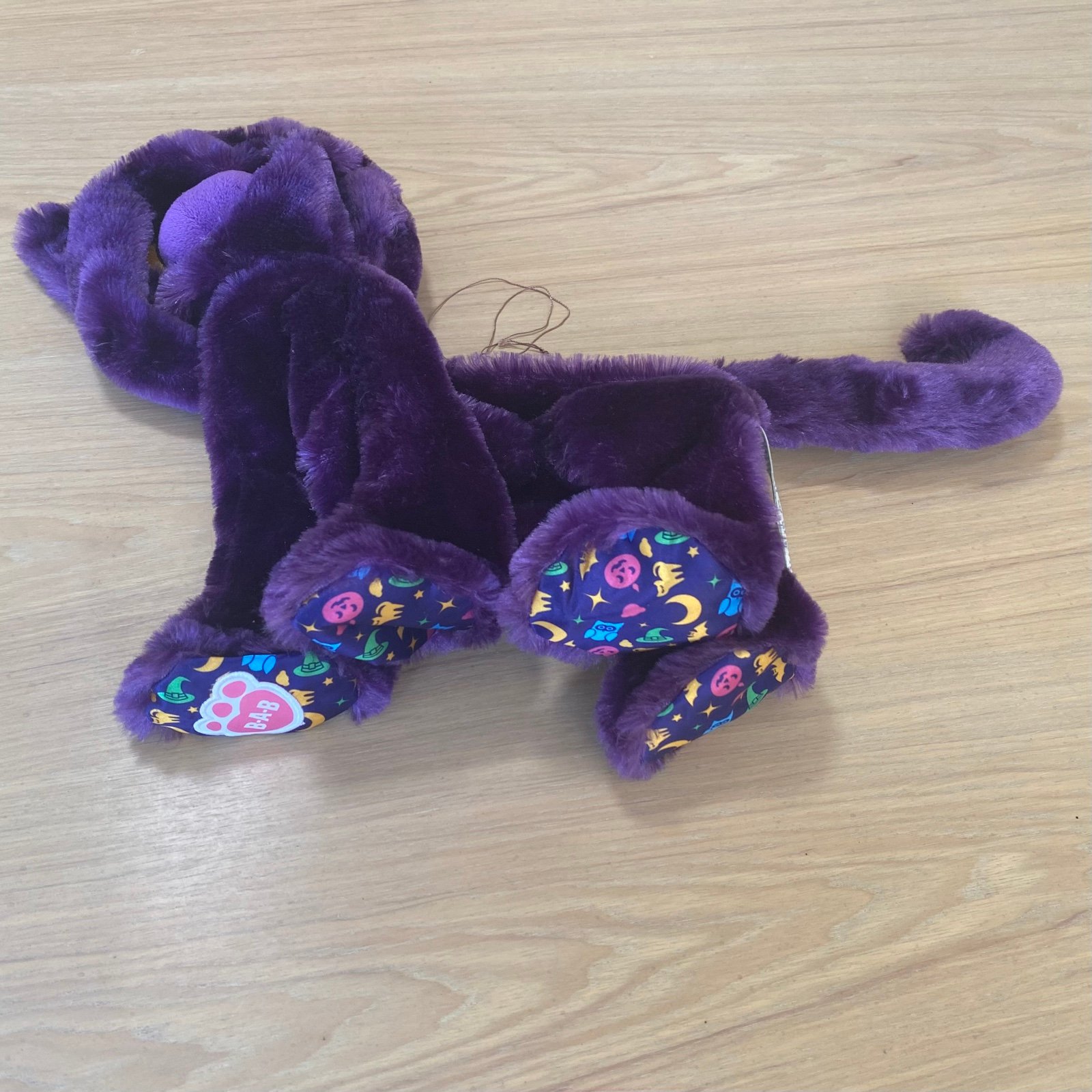 This unstuffed Halloween Build-A-Bear Purple Moon Kitty is in rare condition, missing its ear tag but otherwise like new with its original strings for an easy in-store stuffing experience