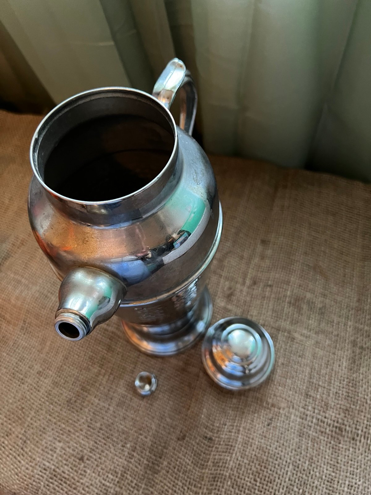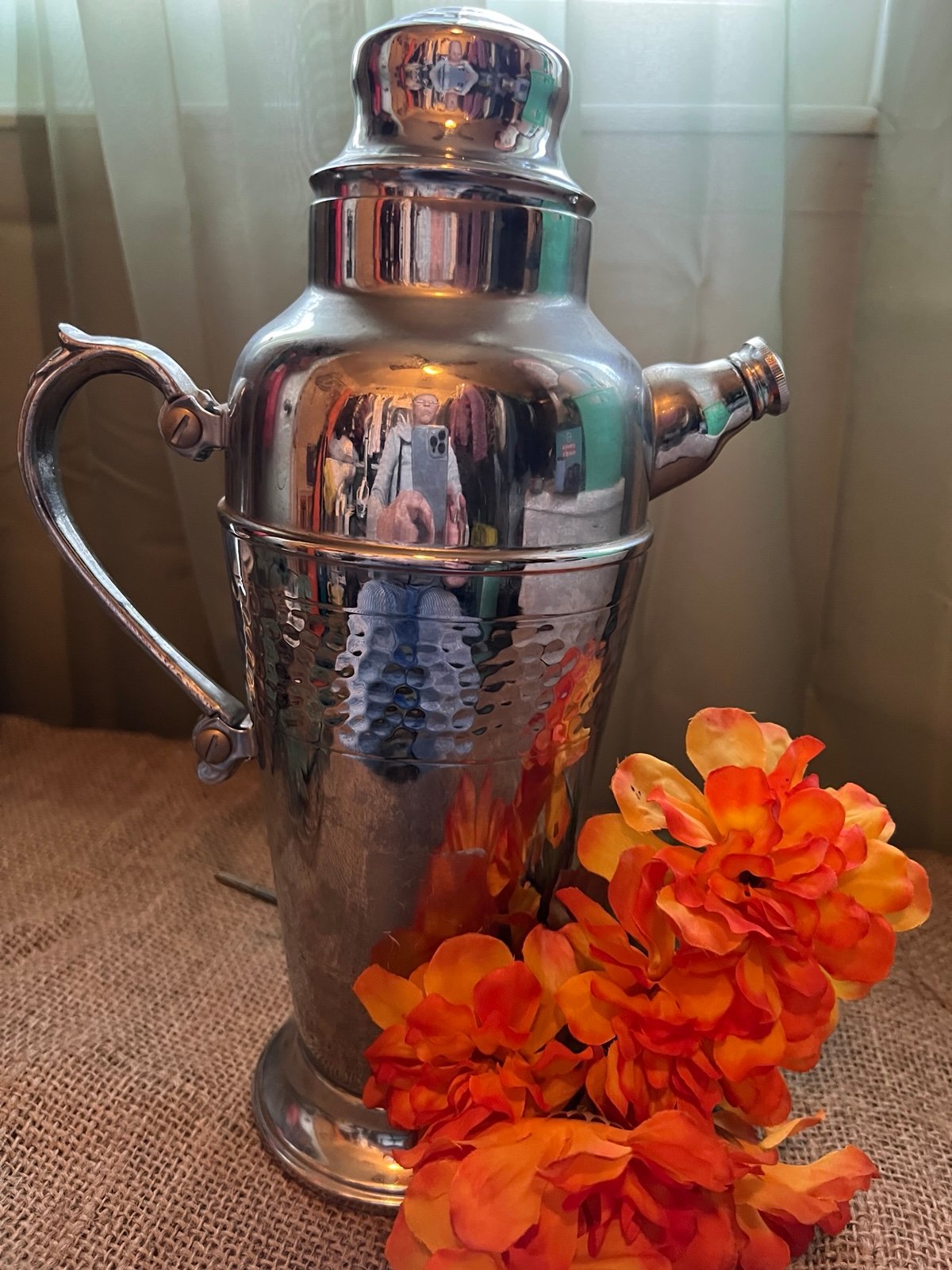 Vintage Cocktail Shaker classic design. Spout and lid screw on and off. Shiny and fun with the 70’s flare. A must have for practical use, conversation, and decor! Very sturdy and strong. Excellent vintage condition.