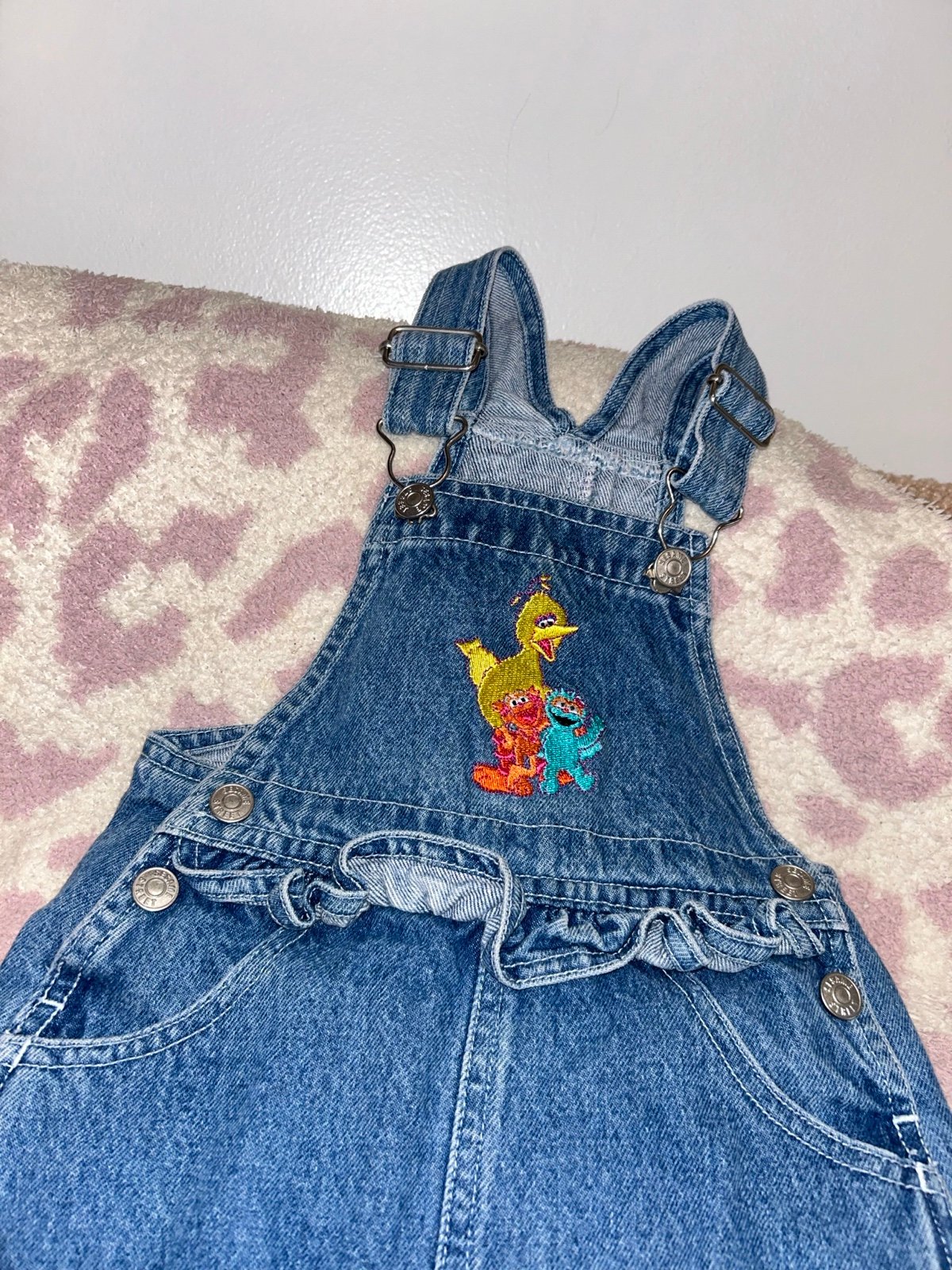 vintage girls sesame street big bird overalls - size 18 months! only flaw is the one clip doesn’t have a bottom piece, it still does work and clip, it just can’t be absolutely yanked on. feel free to message or send an offer:)