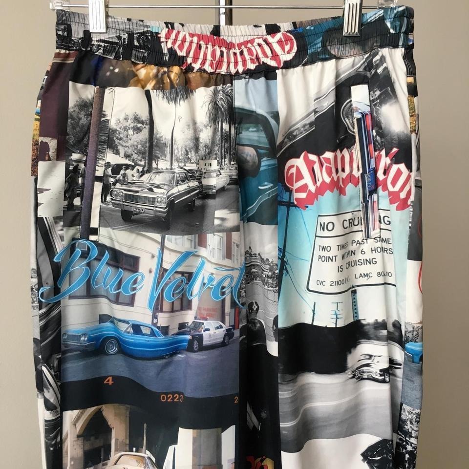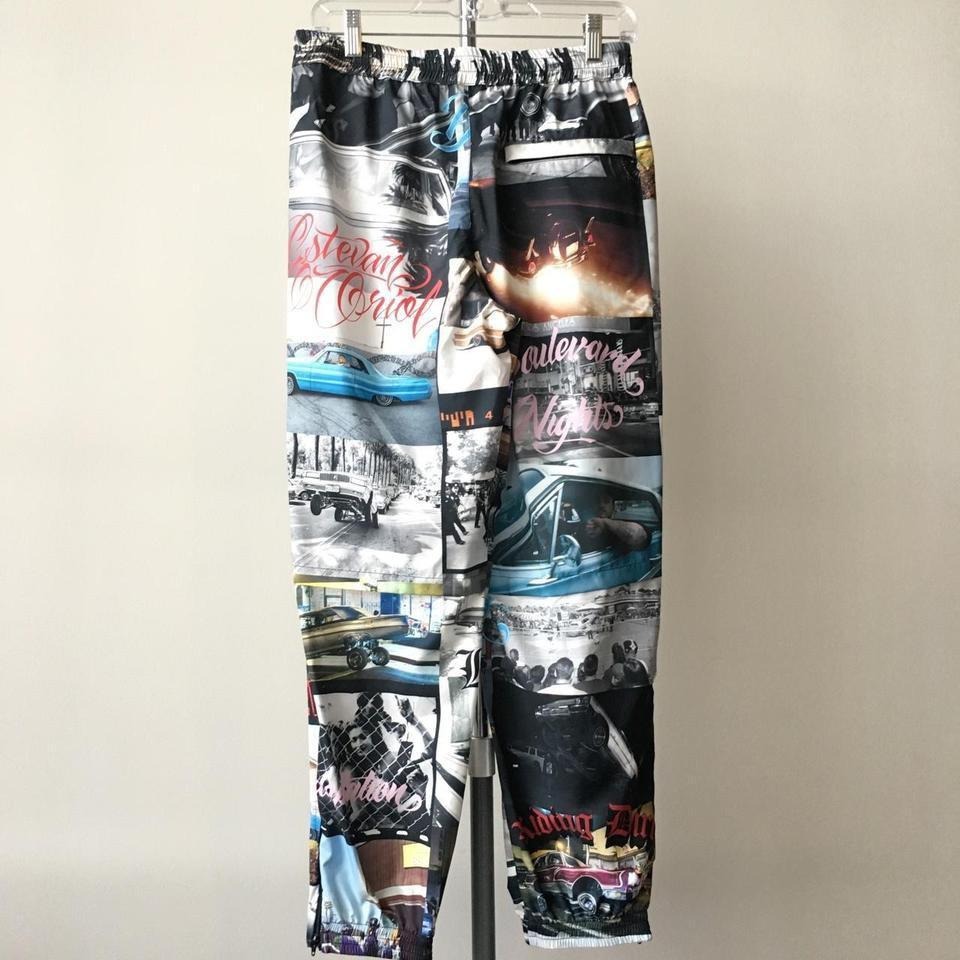 Made in collaboration with Estevan Oriol, these pants are printed with imagery of Los Angeles lowrider car culture.