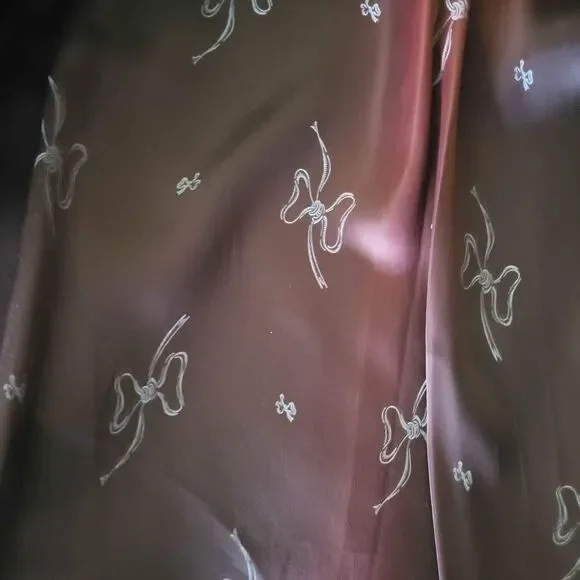 So classy!Faux fur in what appears to be a chocolate/mahogany brown.Hook closure.Definitely has a glam vibe to it.Cuffed sleeves are 3/4 length to give an appearance of a cape.No size but appears to be Large (about a 12)based on measurementEmbroidered inside.Not sure if this is the designer.Definitely vintagePit to pit - 22 inchesLength 28 inchesSupercool piece!Has a rockstar feel to it!The last image is included to show how it was worn back in the day.....