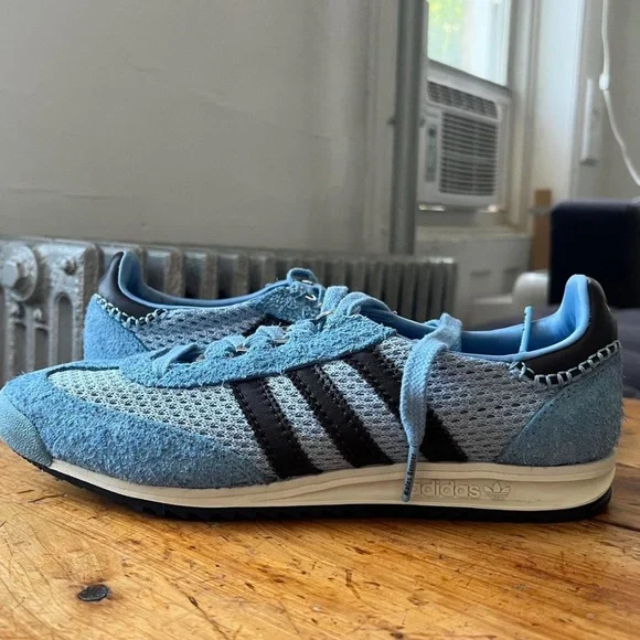 Adidas by Wales Bonner SL76 Ash Blue / Core Black Sneakers. • Men’s US 9 and a women’s US 10 (could fit a women’s 9.5 potentially as they do run small/narrow). UK size 8.5 • Leather-trimmed brushed-suede with mesh sides. • Comes with original dust bag but NOT original box (does come in a box though) and additional laces. • Worn once, basically no wear whatsoever.• Purchased from ssense.com
