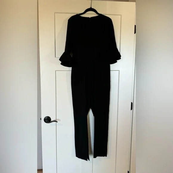 Excellent used condition Size 416.5” pit to pit28” inseamjumpsuit is cut from our Double Face Viscose Blend and is styled with a fjewel neckline, 3/4 sleeves with ruffle cuff and cropped tapered leg. Lined bodice with center back hidden zipper. Inseam measures 28". Self:62% Polyamide, 32% Viscose, 6% Elastane; Lining: 95% Polyamide, 5% Elastane. Dry clean with care. Made in the USA of imported materials.Model is 510.5, wearing size 4.Style 3591228Cropped Straight Pant LegTailored BodiceLined BodiceSymmetrical Side Seam PocketsJewel Neckline3/4 Sleeve28 in. InseamCenter Back Hidden Zipper