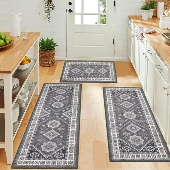 ◉ Condition: Brand New * Kitchen Rugs Sets 3 Piece with Runner: This farmhouse kitchen rugs set include 3 piece kitchen floor mat which measures 20"x32"+20"x47"+20"x59". Perfect combination size, you can arrange them at will in any home, office or christmas holiday decoration.* Durable Kitchen Mats for Floor: Our kitchen runner rug set made of premium polypropylene fabric material, very durable use.Classic printing with rich elements and dyeing process, non-fading and non-shrink, protect your kitchen floor dry and clean.* No Slip Kitchen Rug Set with Runner: The boho kitchen floor mat set come with premium non skid TPR and cotton backing, durable, reliable and practical, which make our kitchen runner set effective to avoid slipping and scratching,protecting your family.* Washable Kitchen Rug Runner Set: Our washable rug can be routinely cleaned with a regular vacuum cleaner or machine washable for a deep clean.The farmhouse area rugs for kitchen has been tested for many machine washes, will not fade, will not deform.* Widely Use Vintage Accent Rugs: The distressed hallway runner rug carpet is ideal for wash room floor mat, laundry room rug, kitchen rug carpet, indoor doormats, hallway runner rug, bathroom rug,also great gift Christmas,Thanksgiving and New Year.