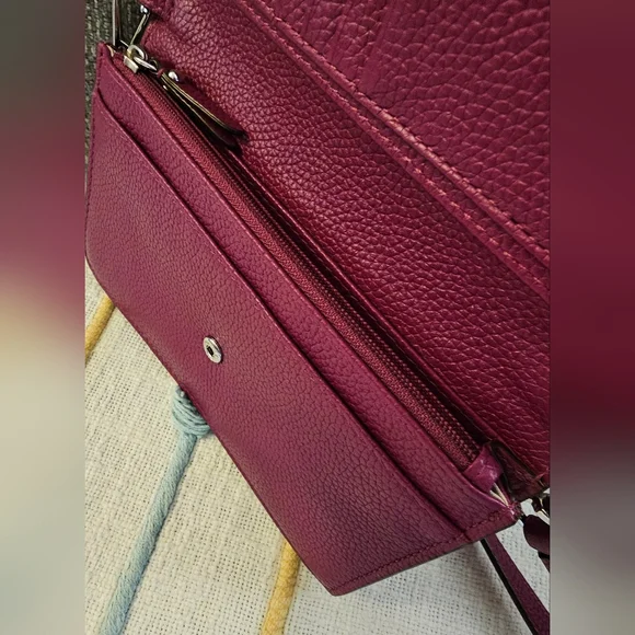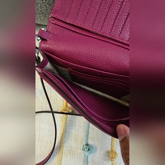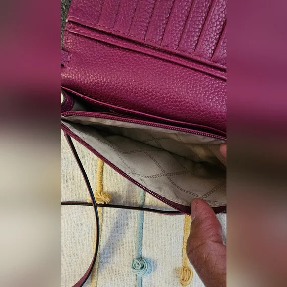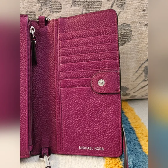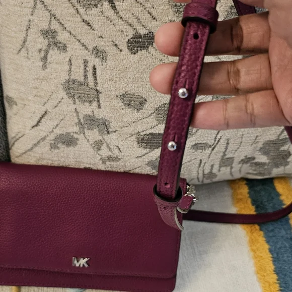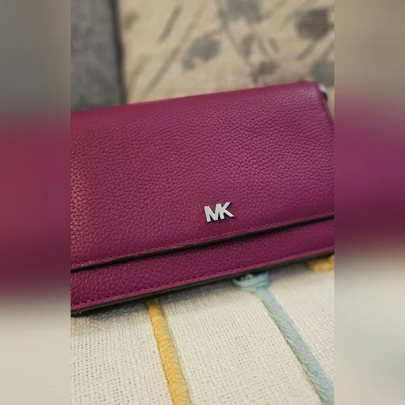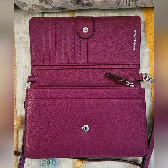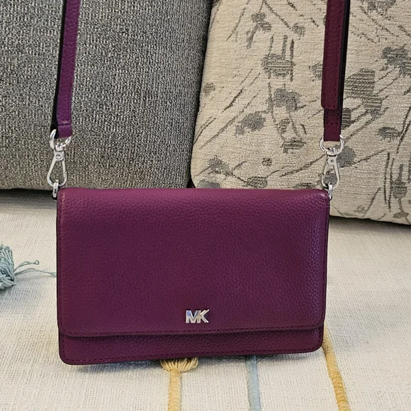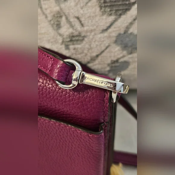 PrelovedEUCPebble leatherPlum colorSilver tone hardwareSnap closure11 credit card slots2 bill slots1 zip pocket1 phone pocketApprox. W 7" x H 4.5" x D 2"Strap drop 22" - 24"*Sold as is**All sales are final*Elevate your style with this chic Michael Kors crossbody bag in a stunning plum hue. Perfect for any occasion, this bag combines elegance and functionality.