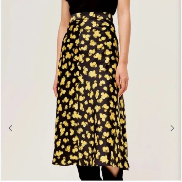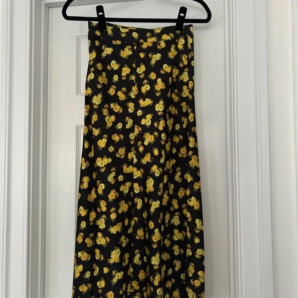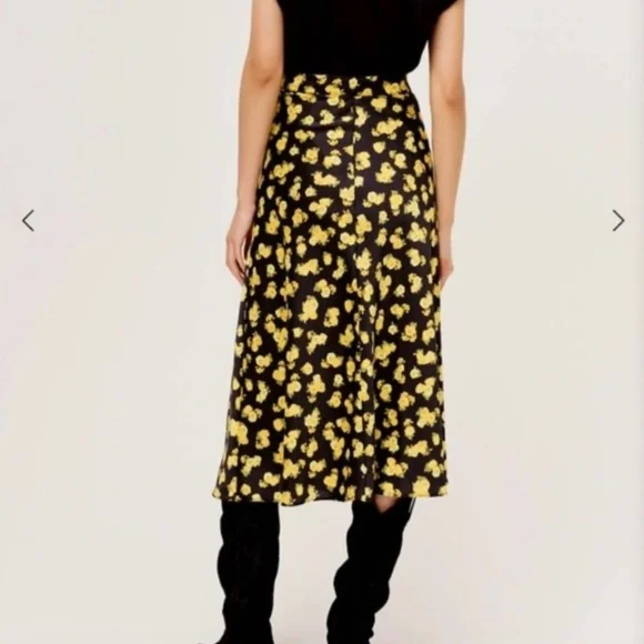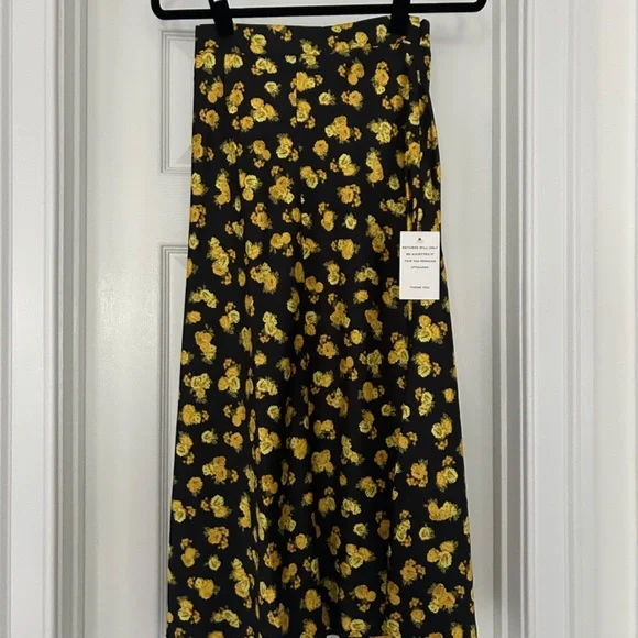 Brand new with tags, never worn!Designer: For Love & LemonsColor: MarigoldDescription:Sunny floral print maxi skirt featuring a flowy silhouette. Front and back seam line detailing, zipper closure. Made from recycled poly. Seam Lines at Center Front and Center Back Flowy, Drapey Silhouette Side Seam Invisible Zipper Closure Unlined