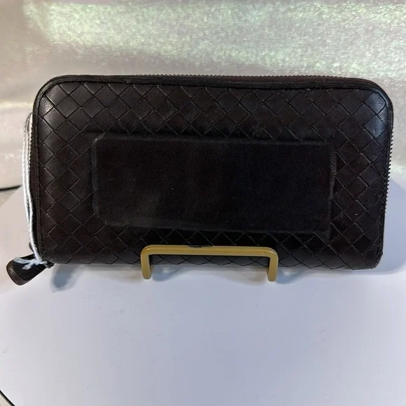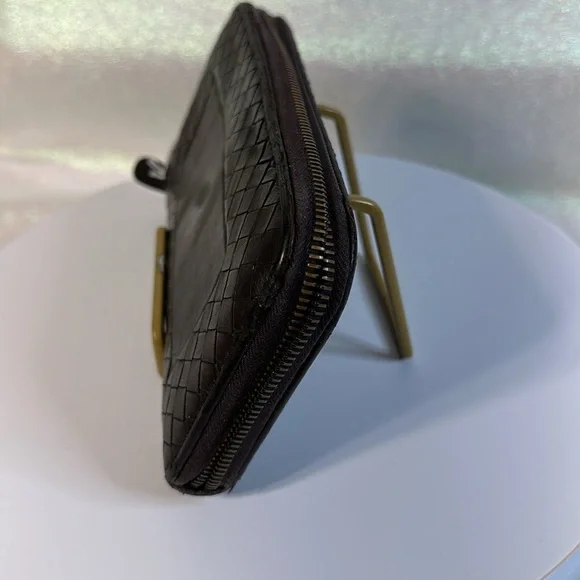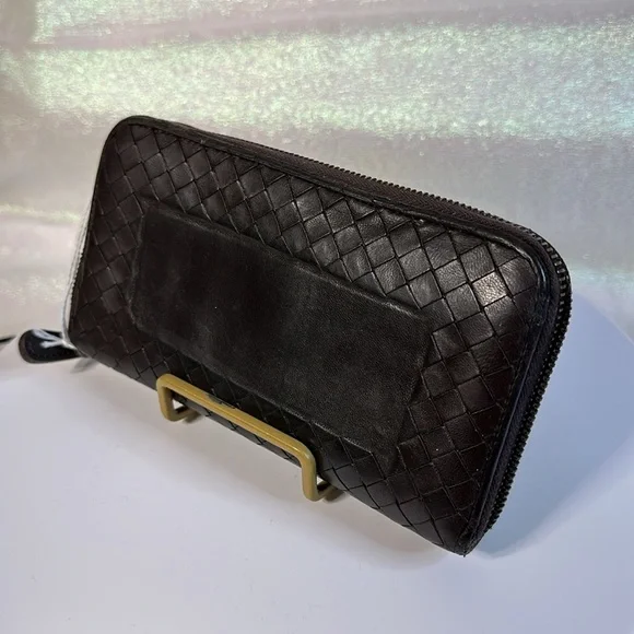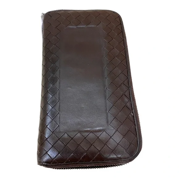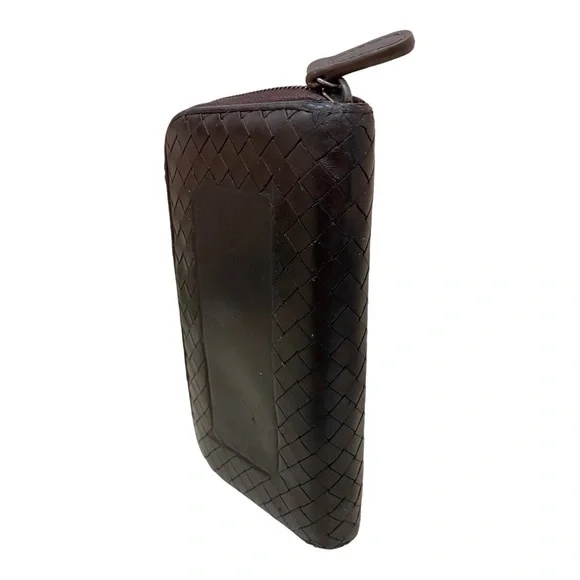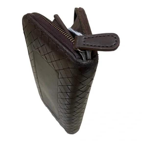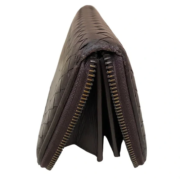 Bottega Veneta Brown Intrecciato Woven Leather Zip Around Wallet