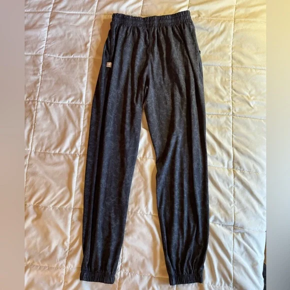 Women's Vuori Dreamknit Boyfriend Sweatpants Jogger, Size XXS. Faint gray camo pattern, 2 hand pockets, inner drawstring, elastic cuffs. The size tag isn't there, so I compared the measurements to Vuori's size chart. See pics for the chart. Excellent used condition.A boyfriend sweatpant made with our super soft brushed jersey DreamKnit™ designed with two side pockets, a mid-rise elastic waist, and a just-baggy-enough sweatpant fit to be fabulous. Great for lounging like you mean it.Approximate Measurements:- Waist: 12" (slightly under)- Length: 25"Lounge pants, athleisure, sporty, performance, travel, casual, casual luxe, vuori jogger pants